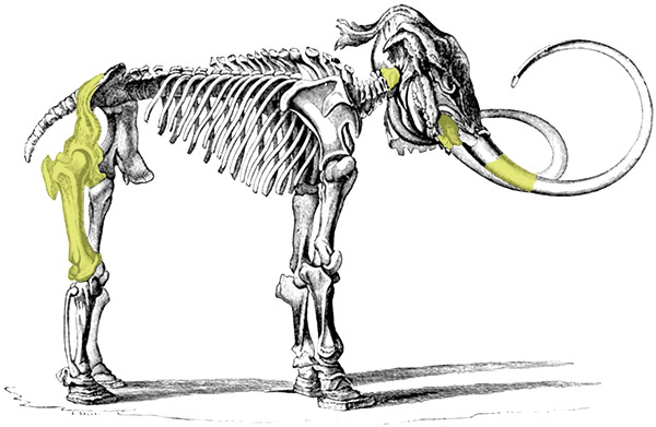 Mamut kostur - Na ilustraciji gore vidljivi su ulomci izložaka koji su prezentirani u stalnom postavu.