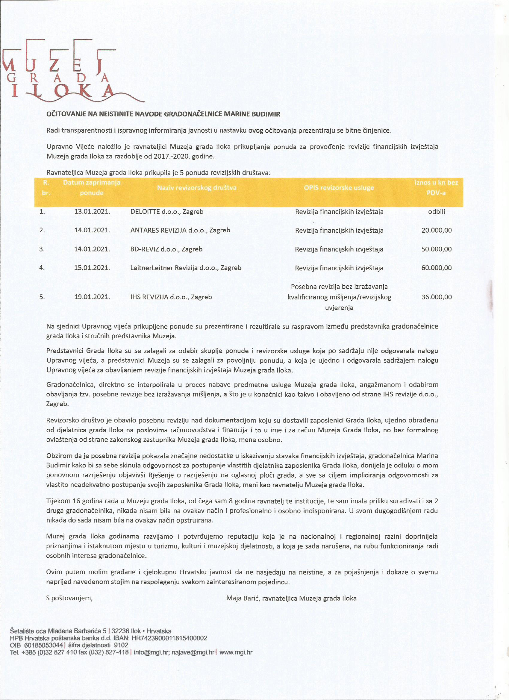 Očitovanje na neistinite navode gradonačelnice Marine Budimir